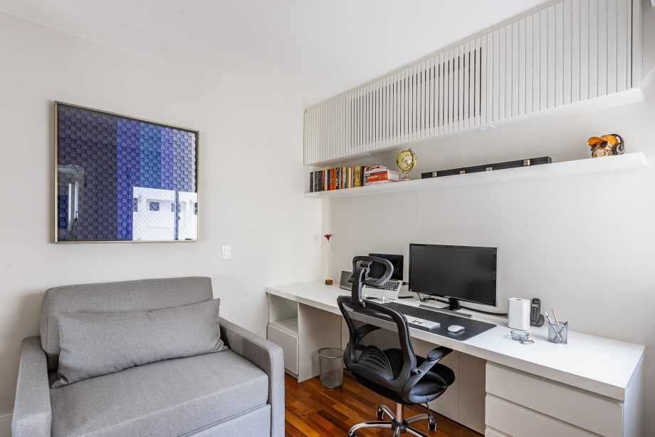 Além das muitas peças de família reaproveitadas no projeto de reforma, o apartamento conta com quadros da artista plástica Marcelle, muito querida pelos moradores. A varanda, por sua vez, abriga obras de Rosa de Luca, fotógrafa que produz quadros com fotos de folhagens, o que dá a impressão de ter uma janela a mais no ambiente da varanda.