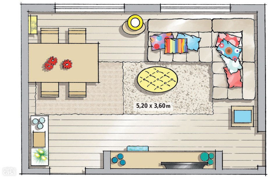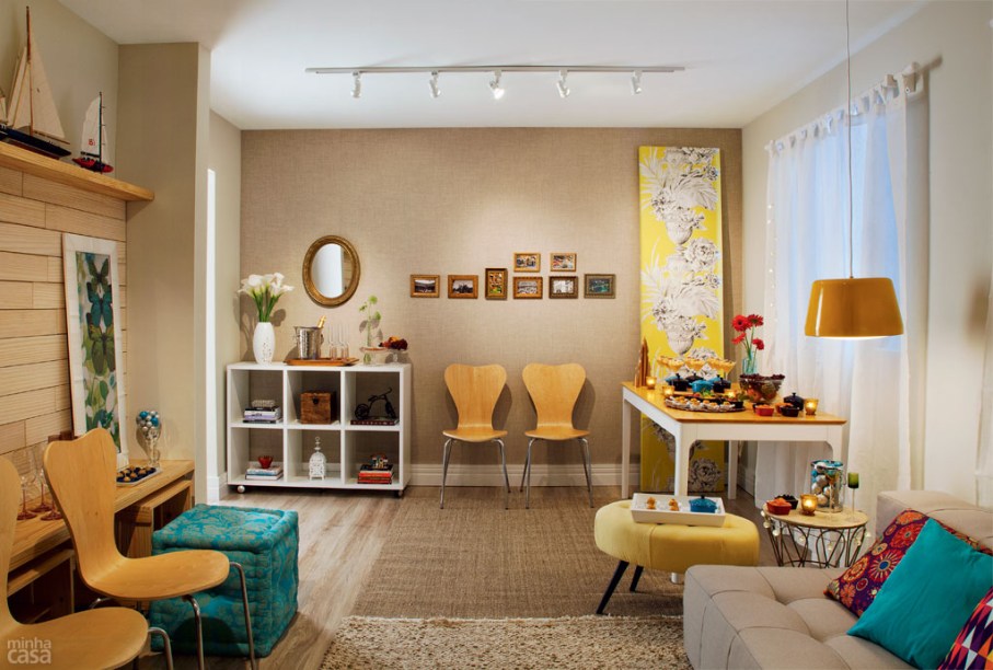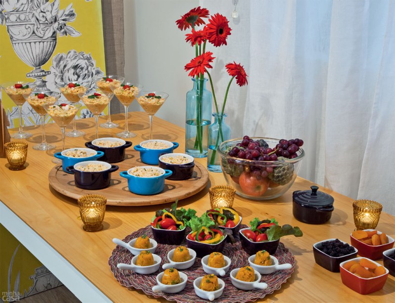 Quem disse que sala pequena é desculpa para deixar de abrir as portas de casa no fim do ano? O ambiente que montamos neste mês está aí para provar o contrário: apesar de ter medidas enxutas, ele é muitíssimo bem-preparado para receber. “O segredo está na escolha de móveis adequados para a planta. Não adianta ter uma mesa de oito lugares para acomodar todo mundo, se as pessoas não conseguem se mover em torno dela”, defende a arquiteta paulistana Rachel Nakata, autora do projeto. Peças versáteis e fáceis de arrastar de lá para cá são essenciais. A base neutra estimula o uso de acessórios coloridos, que mudam conforme a ocasião. Na hora da festa, o importante é sobrar espaço para circulação, prever diferentes cantos de conversa e, claro, deixar comidas e bebidas ao alcance de todos, o que facilita bastante o trabalho dos anfitriões – nossa festa, por sinal, tem um cardápio delicioso, assinado pela personal chef Luiza Zaidan, também da capital paulista.