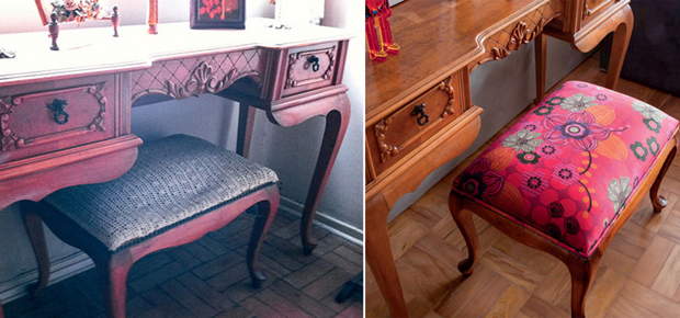 10. Banqueta de penteadeira ficou charmosa após o restauro